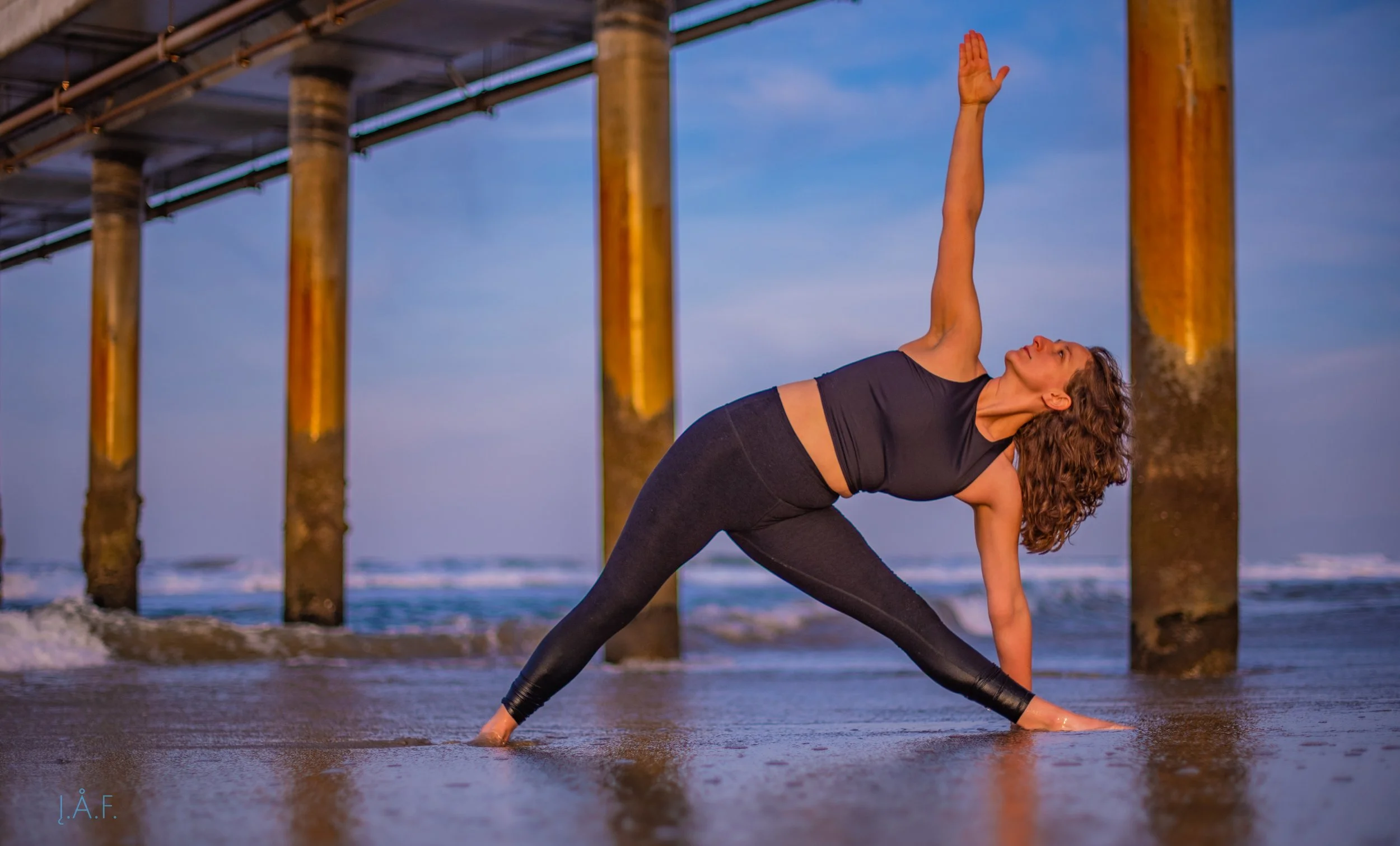In 2015 Sarah moved to Los Angeles, discovered the Accessible Yoga Organization (now the Accessible Yoga Training School) and currently mentors new teachers through portions of the online training. For four years, as lead teacher at Hot 8 Yoga Pasadena she co-facilitated 200 hour and Yin teacher trainings. Sarah continues to create teacher training programs embedded with trauma-informed principles, extensive prop-work and alignment-focused cueing catered to the student. Most recently with One Life Yoga Pasadena (2024). She is now a full-time part of the teaching staff at One Down Dog.
